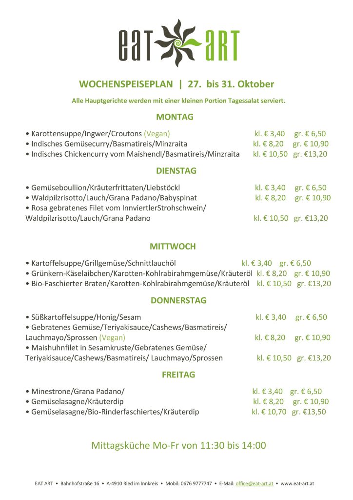 Wochenspeiseplan 2.10-6.10.23