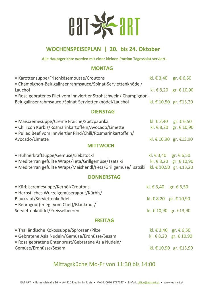 Wochenspeiseplan 9.10-13.10.23