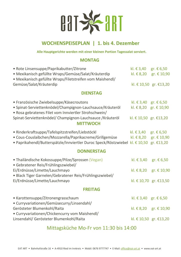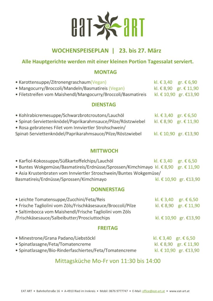 Wochenspeiseplan 2.10-6.10.23