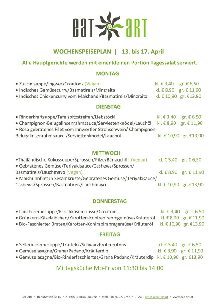 Bitte Whatsapp Bestellungen unter +43 676 97 77 747 bis SPÄTESTENS 11:30 Uhr bekanntgeben!